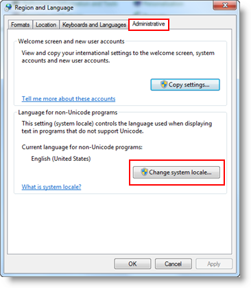 - Klicken Sie im Register Verwaltung auf Gebietsschema ändern.