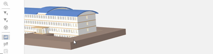 - Bei einer Perspektive, die weiter vom Gebäude entfernt ist, bewegt sich die Kamera um das Gebäude herum, das heisst, es sieht so aus, als würde sich das Gebäude um die eigene Achse drehen. Das Zentrum dieser Drehung ist derjenige Punkt, den Sie mit dem Drücken der rechten Maustaste ausgewählt haben.