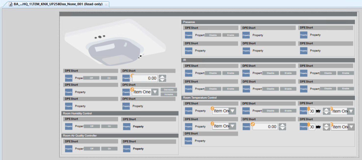 Im Konfigurationsmodus ist dies die Grafikvorlage für die Präsenzmelder UP 258E22 und UP 258D12.