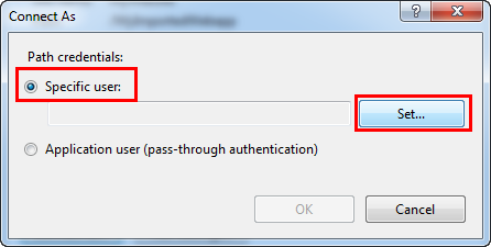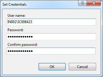 a. Enter a user name (domain user credential with which you have shared the project, virtual directories and the user should be a member of the IIS_IUSRS group).