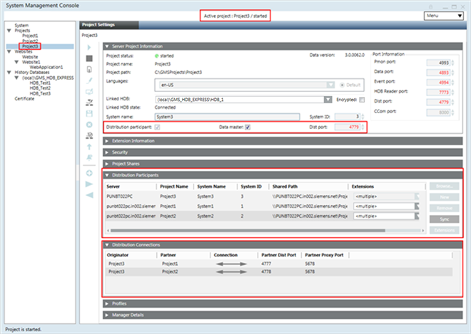 18. Repeat steps 7 to 15 to set up the third project, Project3, in distribution using a unique Dist port. Then add the distribution participants as projects Project1 and Project2 in the Originator project, Project3.