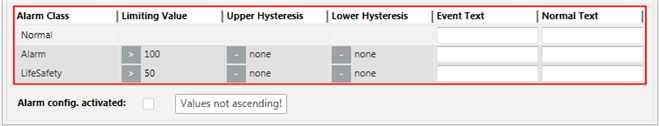- In the Alarm Configuration expander, the Alarm config. activated check box is selected.