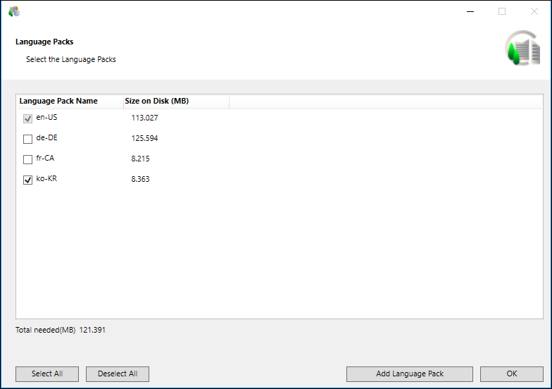 - Wählen Sie in der Spalte Name des Sprachpakets nur die benötigte Sprachpakete.