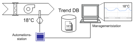 | Trenddaten werden kontinuierlich in das Managementsystem geladen und können nicht in der Automationsstation gespeichert werden. |