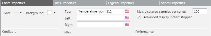 | Properties | Öffnet das Dialogfeld Eigenschaften für Diagramme, Achsen, Legenden und Serien. |