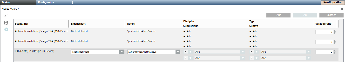 - Das Makro ist definiert, und alle Automationsstationen sind zugeordnet.