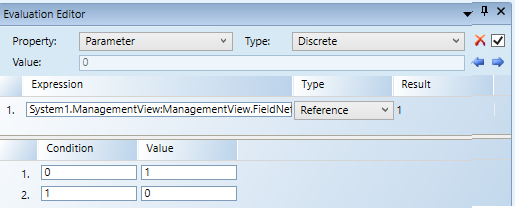 Hinweis: Wenn der Datenpunkt im Ausdruck gleich 0(Inaktiv)ist, kommandiert der Parameter den Wert 1 (aktiv) - Klicken Sie Neue Bedingung einfügen