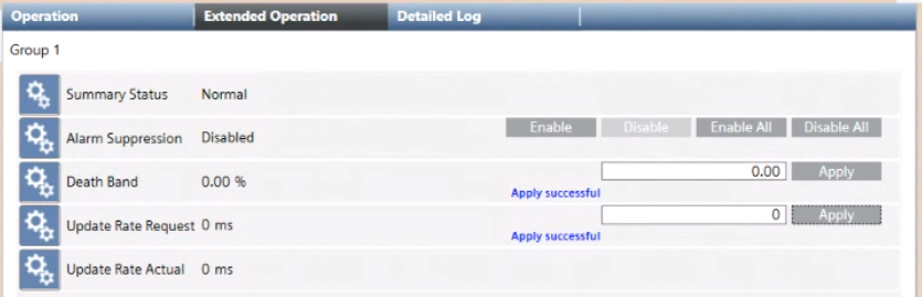 Wenn Sie eine OPC-Gruppe auswählen, werden im Register Erweiterte Bedienung deren Eigenschaften und Befehle angezeigt.