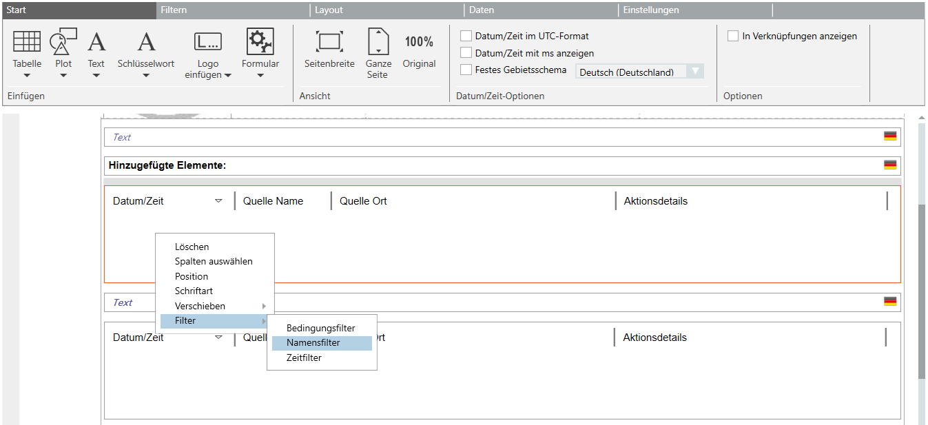 a. Rechtsklicken Sie die Formatvorlage Hinzugefügte Elemente (Datum/Uhrzeit) und wählen Sie Filter > Namensfilter.