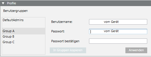 In Gruppen kopieren Wenn das Passwort für alle Gruppen gültig ist, können die Eingaben in alle Gruppen kopiert werden. | ||