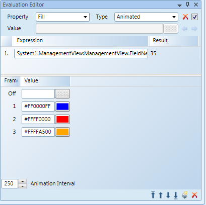 Hinweis: Sie können Symbole auch in jedes Feld Wert ziehen, anstatt eine Farbe zu wählen und die Symbolbilder durchlaufen. - Passen Sie das Animationsintervall nach Bedarf an.