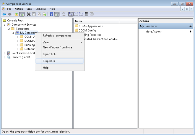 - Der DCOM-Konfigurationsprozess wird gestartet.
