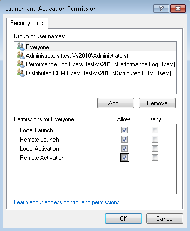 - Gehen Sie im Dialogfeld Berechtigungen für Start und Aktivierung wie folgt vor: