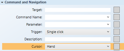 - Navigieren Sie zur Eigenschaft Befehl und Navigation, während der Dropdown-Befehl im Zeichenbereich immer noch aktiv ist, und wählen Sie im Dropdown-Menü Cursor die Art Cursor, die angezeigt werden soll, wenn sich der Mauszeiger im Laufzeitmodus auf der Befehlssteuerung befindet.