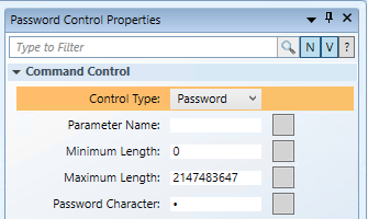- Erweitern Sie in der Ansicht Eigenschaften (Befehlssteuerungseigenschaften) die Eigenschaften für Befehlssteuerung, und wählen Sie in der Dropdown-Liste Steuerungstyp die Option Passwort.