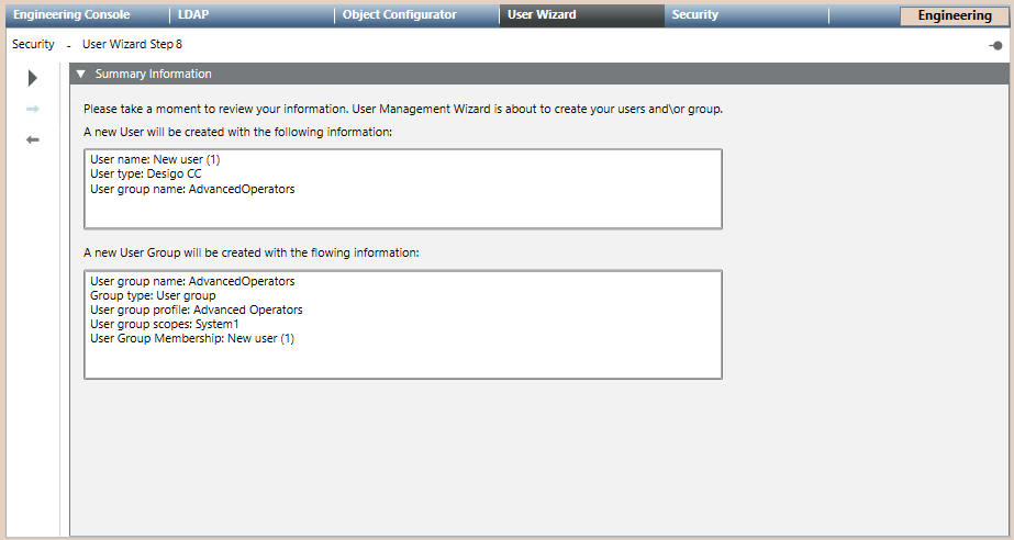 Sie befinden sich im Assistenten für die Benutzerverwaltung, finaler Schritt 8 – Zusammenfassungsinformationen