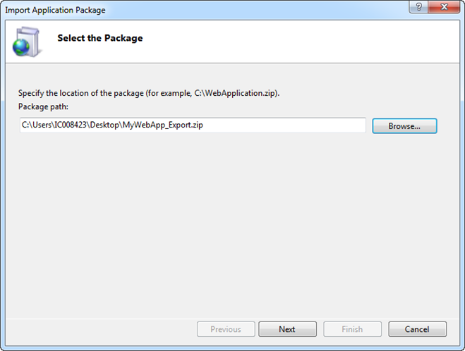 Das Fenster Applikationspaket importieren wird angezeigt.