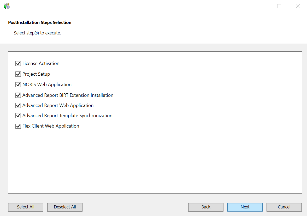 Hinweis: Im Dialogfeld Auswahl der Schritte nach der Installation werden nur die Nachinstallationsschritte angezeigt, für dieExecute = AskUserin der Datei [GMS/EM-Name]PostInstallationConfig.xml konfiguriert ist.
