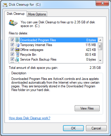 4. Überprüfen Sie im Dialogfeld Datenträgerbereinigung für [ausgewähltes Laufwerk] die standardmässig ausgewählten Dateitypen, bevor Sie diese löschen. Klicken Sie dann OK.