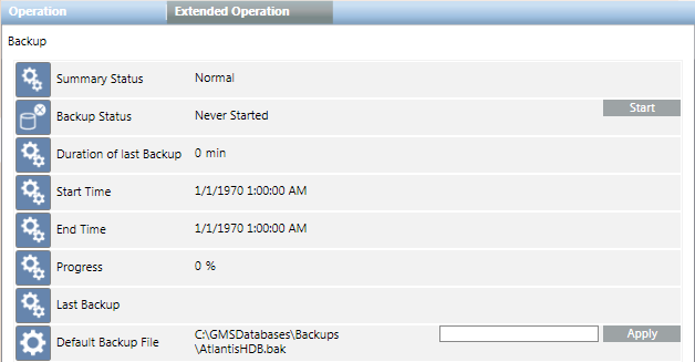 1. Der Prozesszustand ändert sich während des Backups in Geplant. Nach einem erfolgreichen Abschluss des Backups wechselt die Anzeige zu Erfolgreich abgeschlossen und zeigt ferner das Sicherungsdatum an. Die Angabe Letztes Backup zeigt den Backup-Ordner und den Dateinamen HDB.bak an.