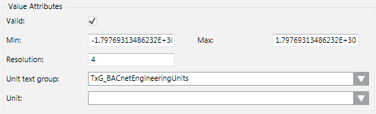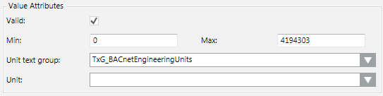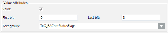 6 | Textgruppe | Liste der verfügbaren Textgruppen. Neue oder veränderte Textgruppen müssen durch Drücken der Taste F5 aktualisiert werden. Für wertskalierte Einheiten muss TxG_EngineeringUnits gewählt werden. |