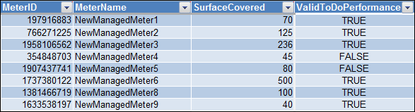 SurfaceCovered | Area in square meter units (M2) that is covered by the managed meter |