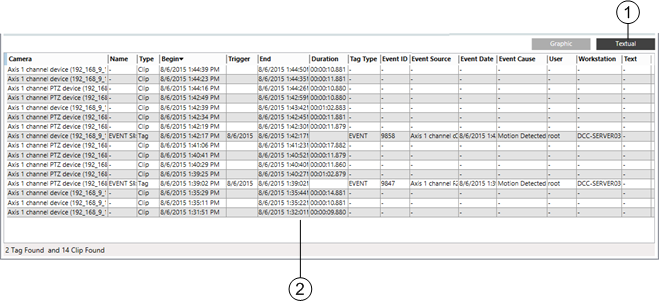 2 | Timeline | Graphically displays recordings and tags on a timeline grid. |