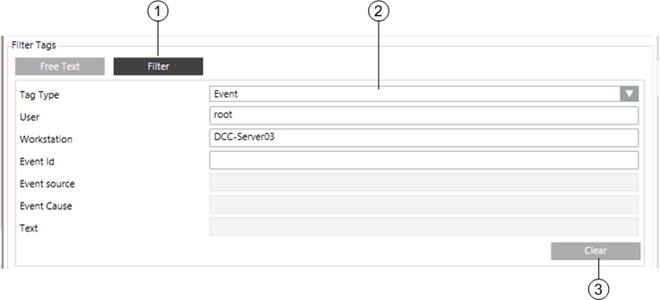 - You must enter the parameter values in the order they are presented by the system. Starting from your first selection, the applicable fields are enabled one after the other while you enter the values to search for. Due to this mechanism, certain combinations of fields are not possible. For instance, you cannot search for an Event ID without specifying User and Workstation.