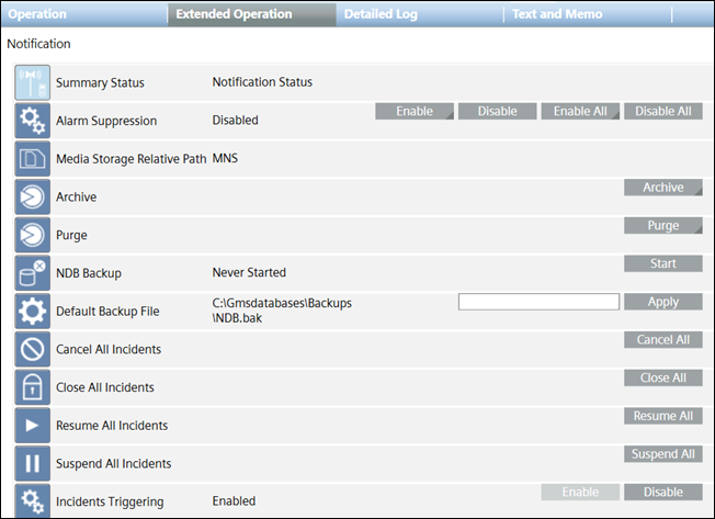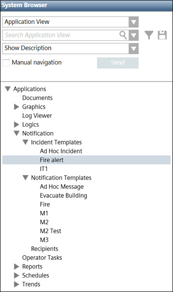 The Browse Incidents tab displays in Operating mode when you select Applications > Notification in the Application View from the System Browser.