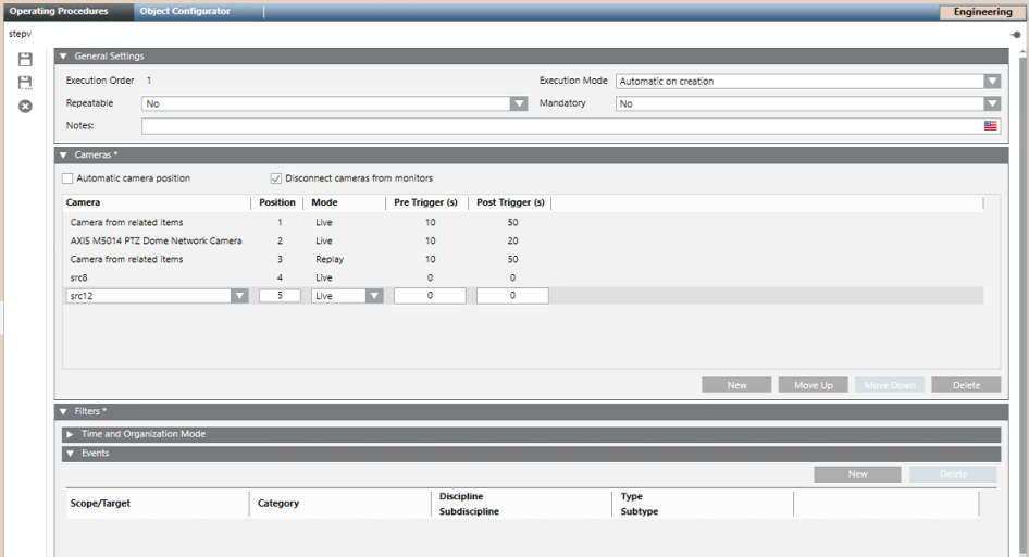 NOTE: The live and recorded video referred to here will be from the cameras configured in the next section, see below. The triggering event is the one that causes the operating procedure to execute, defined in the filters of the operating procedure. - Configure if the video step is Mandatory: Set Yes to force operators to execute and check off the step, which may be required in manual execution mode.