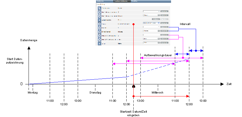 Max. Aufbewahrungszeit für Daten im Kurzzeitspeicher | Min. Aufbewahrungszeit | Max. Aufbewahrungszeit | Löschzeitraum |