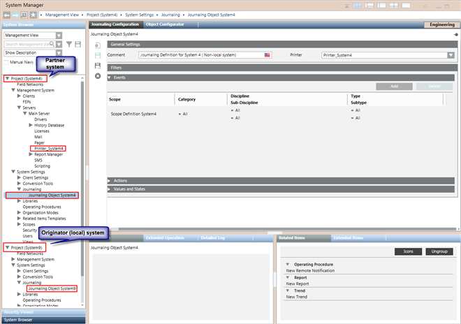 - Wählen Sie Projekt (System B) > Managementsystem > Server > Server und konfigurieren Sie einen Drucker auf System B als Protokolldrucker. Siehe Drucker als Protokolldrucker konfigurieren.