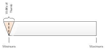Die folgende Abbildung ist ein Beispiel für einen Schieber-Befehl und zeigt die Eigenschaften Minimum und Maximum an. Ebenso können Sie sehen, wie der Zeiger hinsichtlich seiner Breite am Schieber ausgerichtet ist.