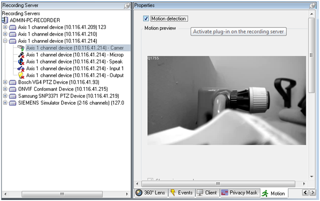 Sie müssen die Bewegungserkennung für die VMS-Kanäle konfigurieren, um Alarme zu erfassten Bewegungen zu erhalten. Das interne VMS-Plugin für die Bewegungserkennung wird genutzt.
