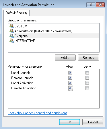 c. Klicken Sie OK. - Klicken Sie im Abschnitt Start- und Aktivierungsberechtigungen die Option Standard bearbeiten und gehen Sie dann wie folgt vor: