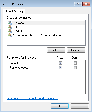 Windows nutzt das Register COM-Sicherheit, um die systemweite Zugriffskontrollliste (Access Control List, ACL) für alle Objekte festzulegen. Die ACLs gelten für Start/Aktivierung (Fähigkeit zum Starten einer Applikation) und Zugriff (Fähigkeit zum Datenaustausch mit einer Applikation).
