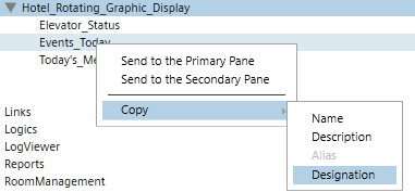 - Navigieren Sie im System Browser zu der Grafik, die Sie anzeigen möchten, und rechtsklicken darauf. Wählen Sie im Kontextmenü die Option Kopieren > Bezeichnung.