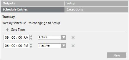 Geben Sie im Falle eines wöchentlichen Zeitplans die Werte Aktiv bzw. Inaktiv nur einmal an. Die Werte gelten für die gesamte Woche und für die gesamte Dauer des Zeitplans.