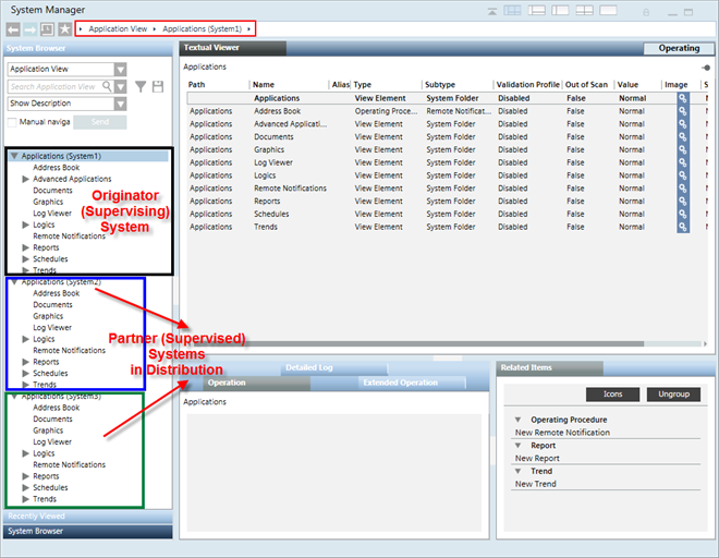 - Wenn Sie eins der Partnersysteme aktivieren, zum Beispiel System1 mit Projekt1, und sich beim installierten Client auf System1 anmelden, können Sie mit dem lokalen System (System1 mit Projekt1) sowie mit allen Partnersystemen der Verteilung, System2 und System3, arbeiten.