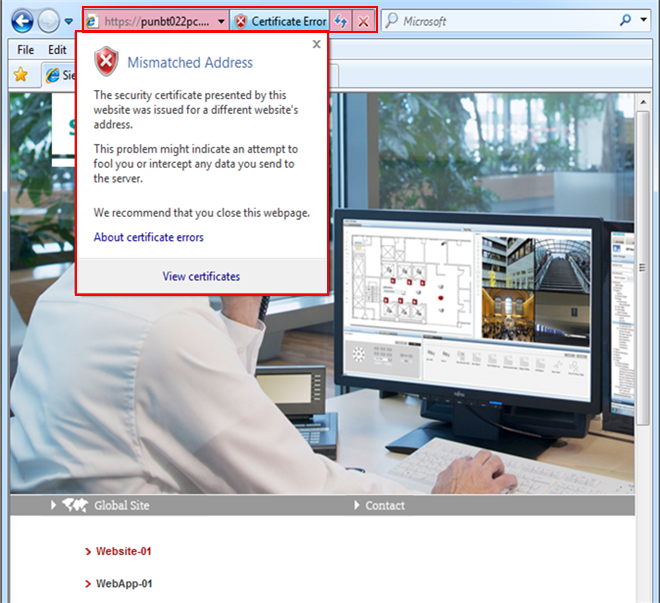 - Nachdem Sie die Website-URL gestartet haben und wenn Sie weiterhin die Meldung Zertifikatfehler erhalten: