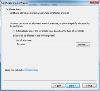 NOTE: If you created the pfx using the self-signed procedure, the password field is blank, and you can leave it blank.