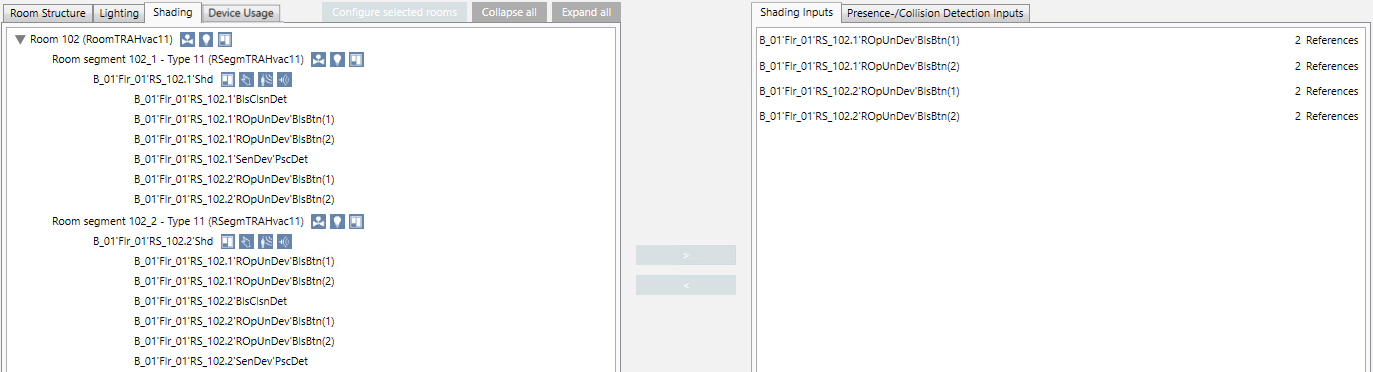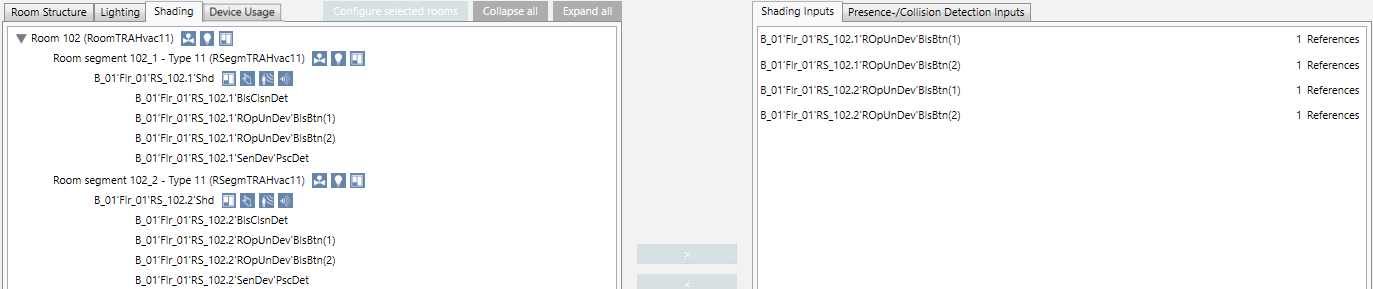 10. Repeat steps 5 to 8 for the area RS_102.2’Shd. Assign inputs RS_101.2‘ROpUnDev‘BlsBtn(1) and RS_101.2‘ROpUnDev‘BlsBtn(2).