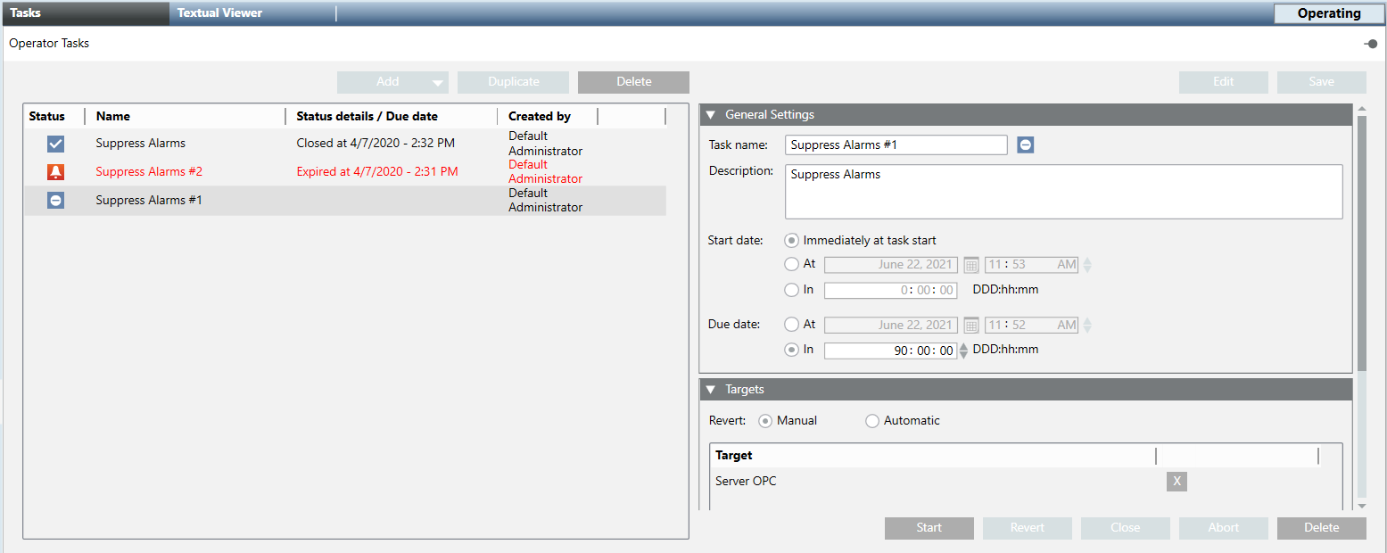 This procedure covers the full creation of an operator task, starting from the type of action you want to perform, and then setting the target objects.