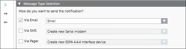 Select the desired medium to send the notification as instructed below. For example, Via Email, Via SMS and Via Pager device.