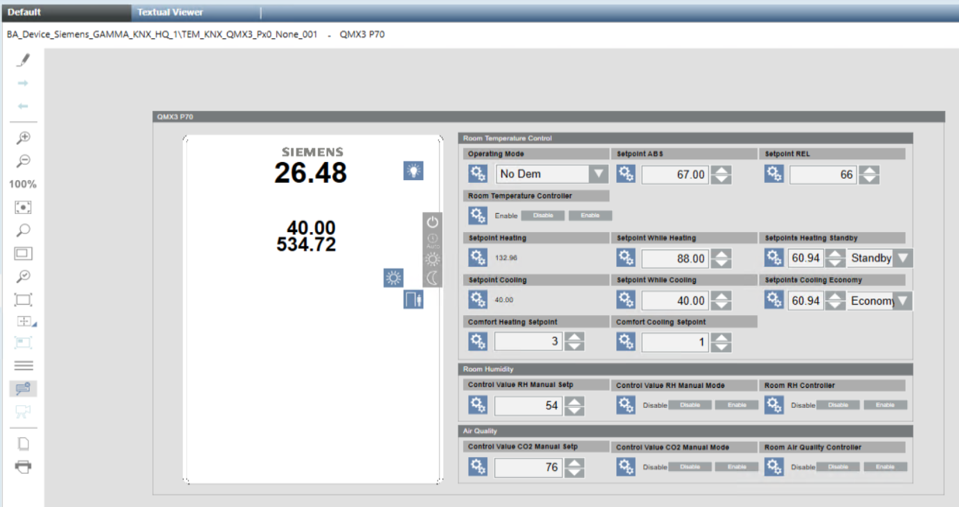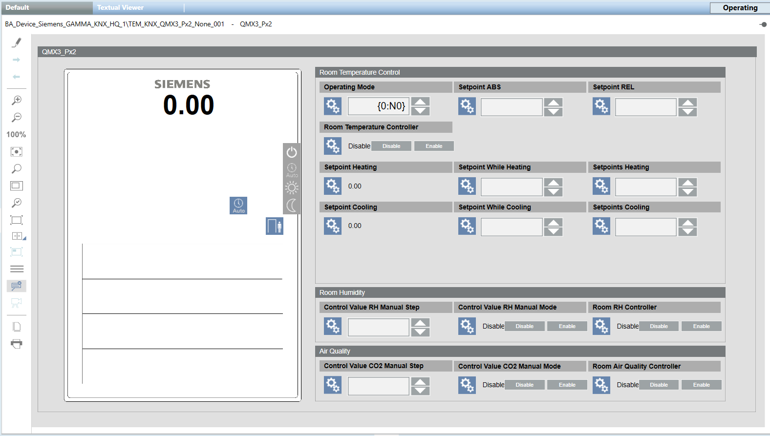 In Engineering mode, this is the graphic template for the QMX3 Px4 room sensor.