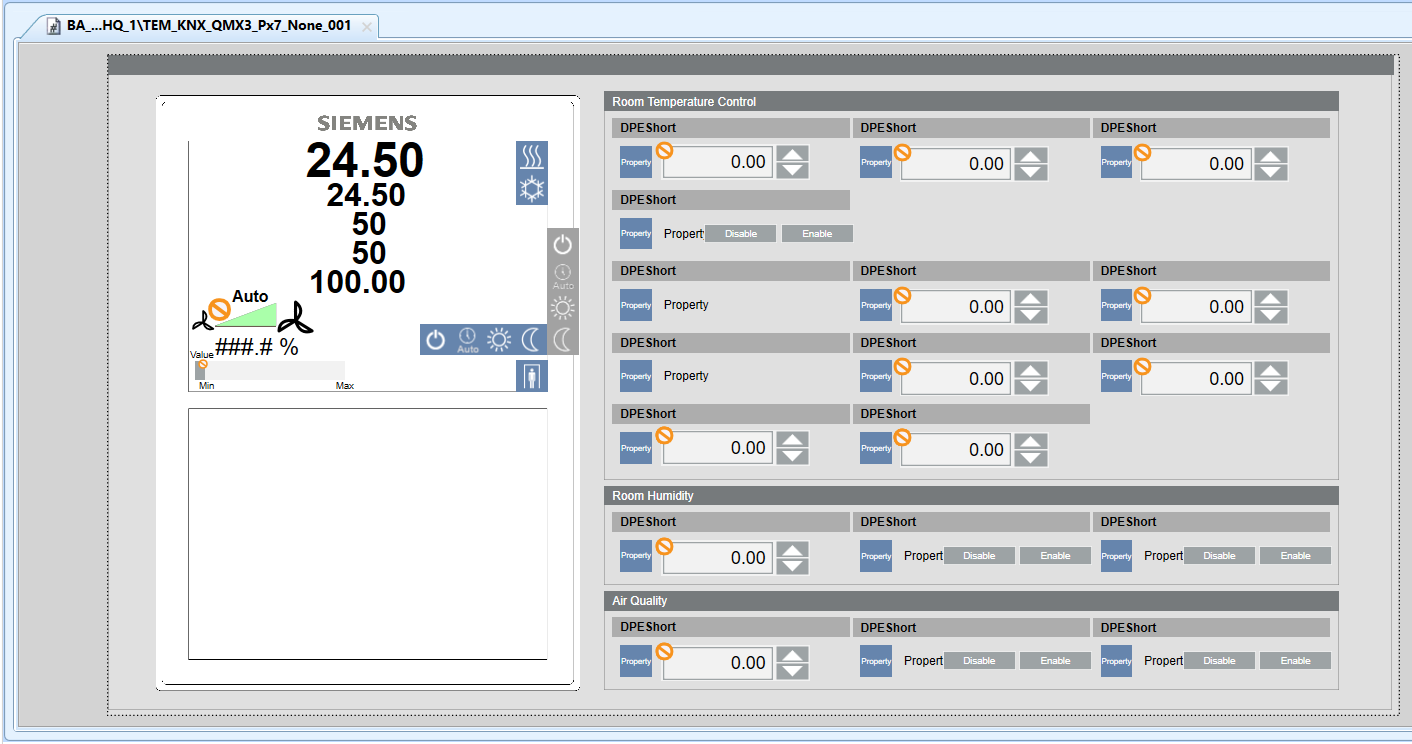 In Engineering mode, this is the graphic template for the QMX3 Px7 room sensor.