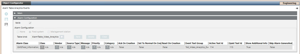 1. This should be the customized alarm table located at […] > Libraries > L4-Project > Video > Video > Alarm Tables > [alarm table for analytic events].