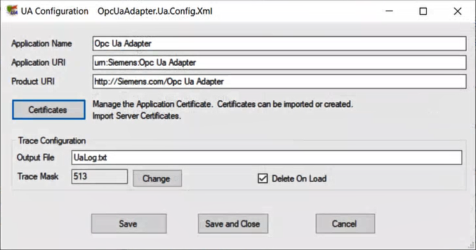 - In Siemens\OPC UA Adapter, run as administrator UaClientConfigHelperNet4.exe.