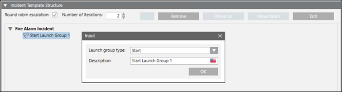When an incident template is triggered by an event, all notification templates contained in the Start launch group are automatically launched.