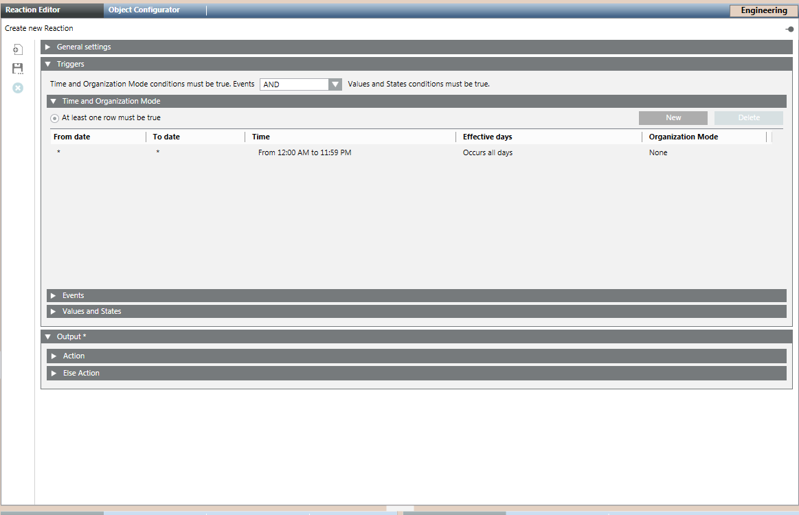 - Click New to add a new row and specify a new time or schedule, when you want to trigger the Initiate Incident command.